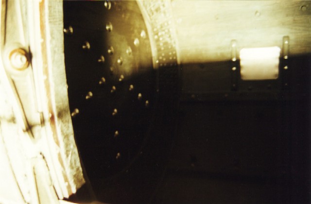251 252a‘Turning Space’ is de titel van deze installatie en tevens van de foto die daar onderdeel van is. Op die foto is de binnenkant van een oud walkvat te zien die vol met huiden, looistoffen en water miljoenen omwentelingen gemaakt heeft. Achter die foto is een prachtige gelooide koeienhuid opgespannen die afkomstig is uit het Andesgebergte.